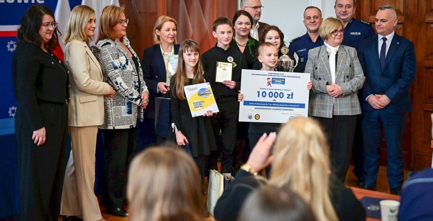 28 stycznia 2026 r. w auli Komendy Wojewódzkiej Policji w Rzeszowie odbyła się wyjątkowa uroczystość, podczas której zwycięzcy tegorocznej edycji konkursu "Odblaskowa Szkoła" odebrali nagrody.